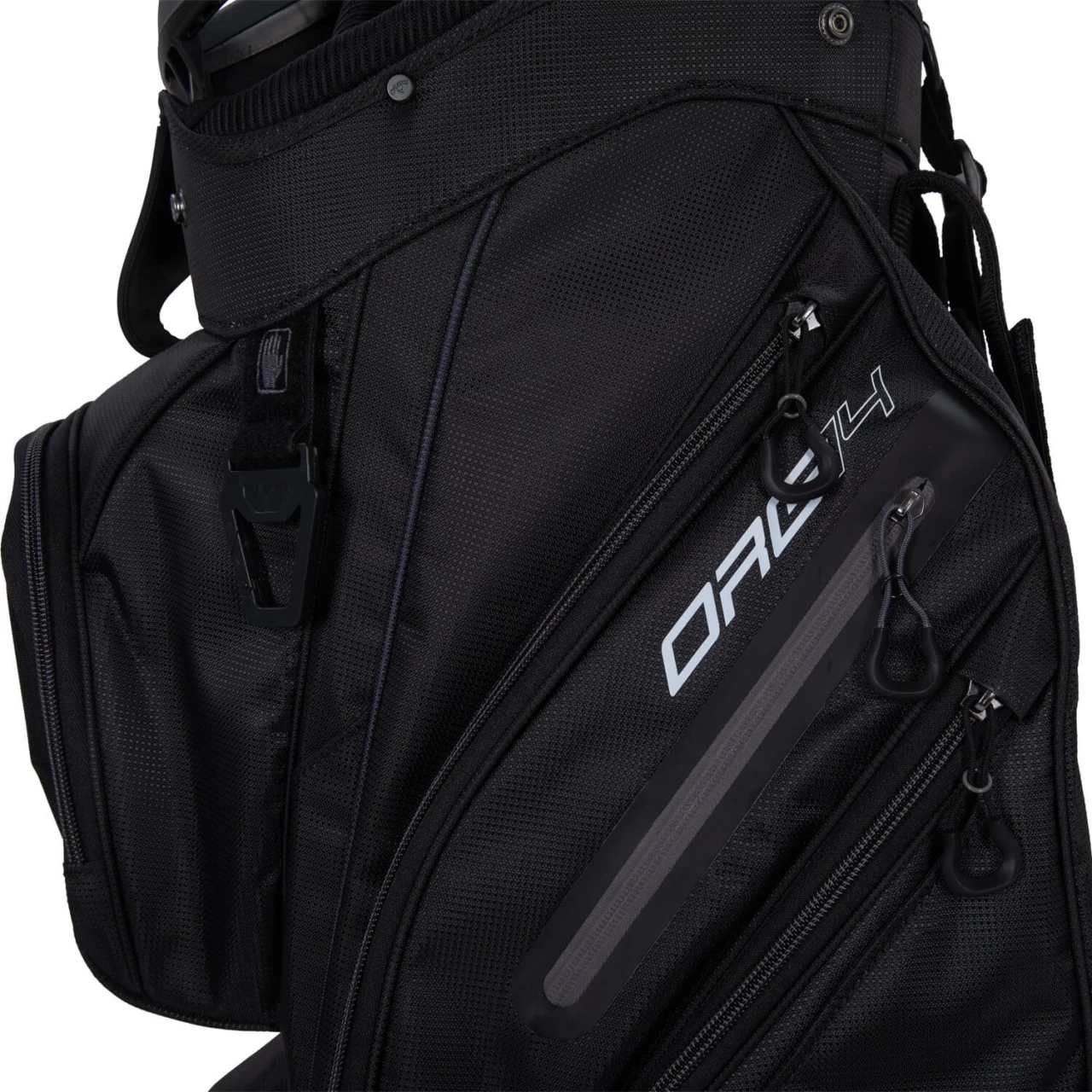 Wer auf seinen Runde viel Stauraum für Equipment benötigt, ist mit dem Cartbag Organizer 14 von Callaway bestens ausgerüstet. Es verfügt über ein 14-fach unterteiltes Top, in dem jeder Schläger seinen eigenen Platz findet, sowie über insgesamt neun Reißverschlussfächer. Dazu zählen zwei mit Fleece gefütterte Wertsachenfächer, in denen auch Rangefinder oder GPS-Geräte Platz finden. Ebenfalls zur Ausstattung zählen Stiftefächer, eine Öse für Handtücher und Co., ein Regenschirmhalter und ein Fach, in dem beispielsweise der Akku des Trolleys Platz findet. Damit das Bag sicher auf dem Trolley befestigt werden kann, verfügt es über eine Gurtführung im oberen Bereich sowie zwei Klettverschlüsse auf der Rückseite, die das Bag zusätzlich auf dem Trolley fixieren. Tragegurt und diverse Griffe erleichtern den Transport abseits des Trolleys.