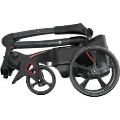 Der Trolley verfügt über ein schmales Packmaß, ein angenehmes Gewicht und einige Extras wie Scorekartenhalter, Feststellbremse und eine Basis für einen Regenschirmhalter. Das Bag lässt sich mithilfe der fest installierten Webgurte samt Steckverschluss sicher auf dem Trolley befestigen. Der Griff ist verstellbar und rastet in verschiedenen Höhen sicher ein, sodass sich der Trolley für nahezu jede Körpergröße eignet.